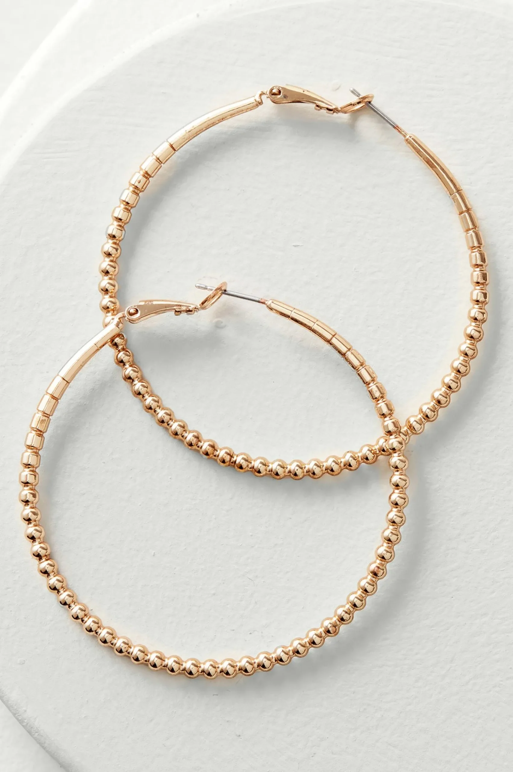 Classic hoops take a star turn with a line-up of tiny, shiny beads circling around. It’s a fresh update to the gotta-have-it hoop earring. Plated iron-based metal. Hinge back.
