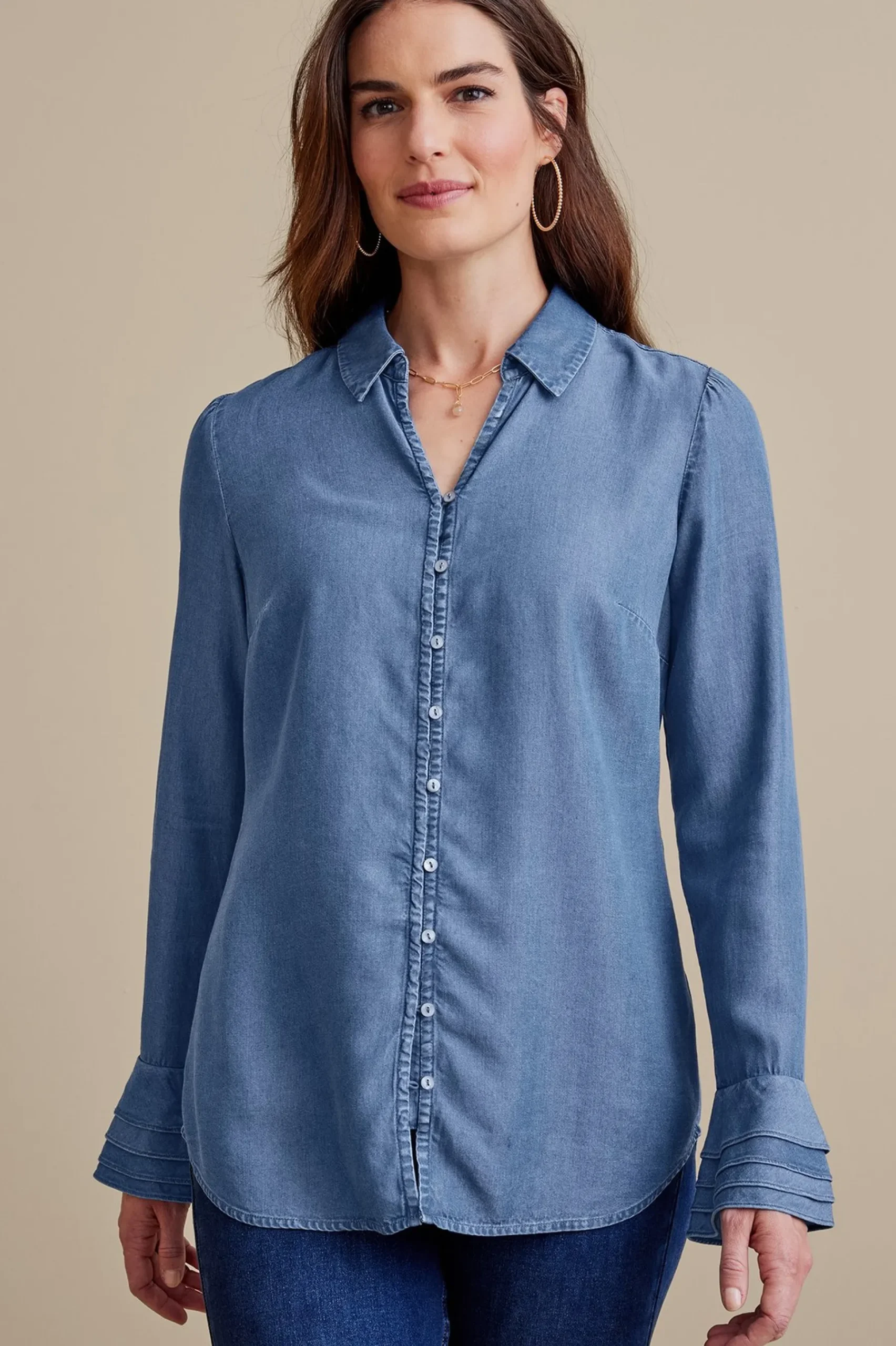 SKU: SKUyksc5co6mb Categories: Clothing, Everyday Styles, Gauze Shop, Into The Blues, Long Sleeve, Shirts, Tops, Tunics, Wear Now Styles Tags: Chambray, Soft Surroundings Brand: Soft Surroundings