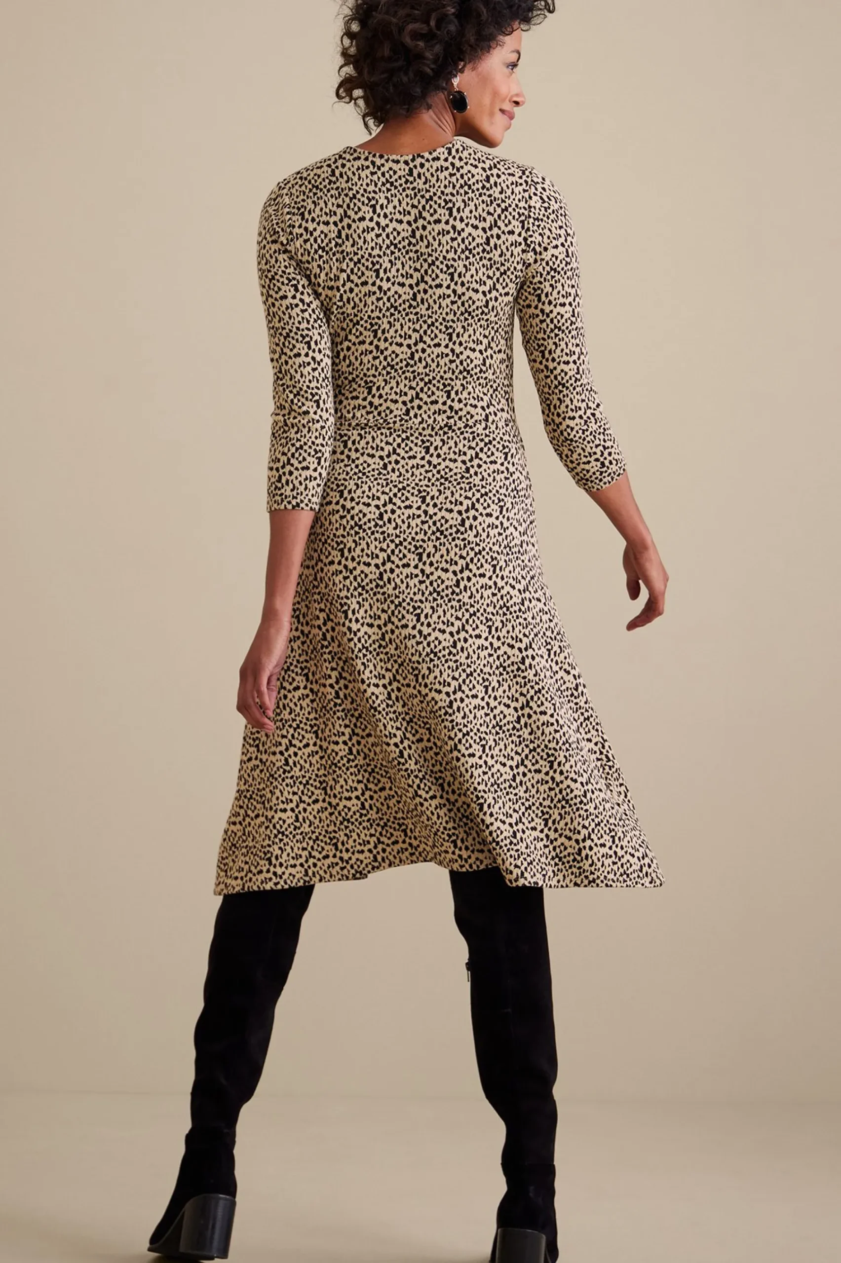 The wrap dress has been a style staple for years and it’s no wonder – the lines are just so flattering. Our designers love the look and wanted to design something with our signature softness. This faux wrap is made from a ribbed stretch knit that’s so comfy and forgiving. Adjust the wrap to your liking with the faux tortoise ring closure. 3/4 sleeves.