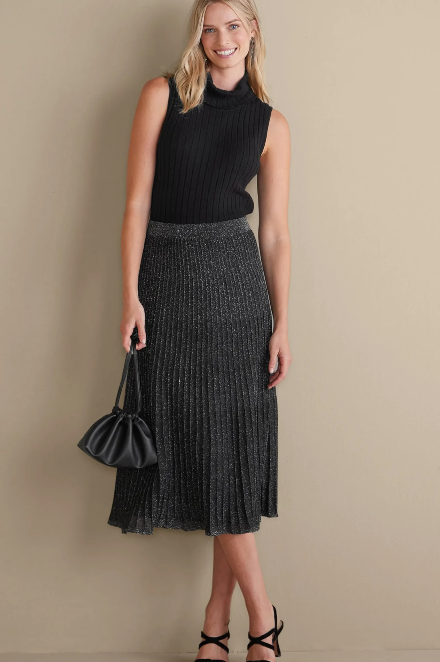 Topped with a classic turtleneck, this wide-ribbed sweater tank is an essential layering piece to wear under your favorite fall jackets and cardis, but cute enough to rock solo, too.